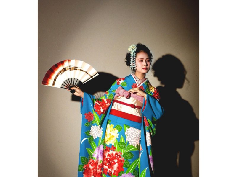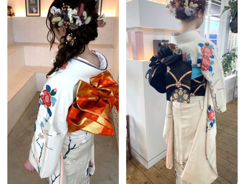 成人式前撮りと成人式当日 着物の帯、帯揚げ、帯締め、伊達えりをかえると雰囲気のちがう着物に