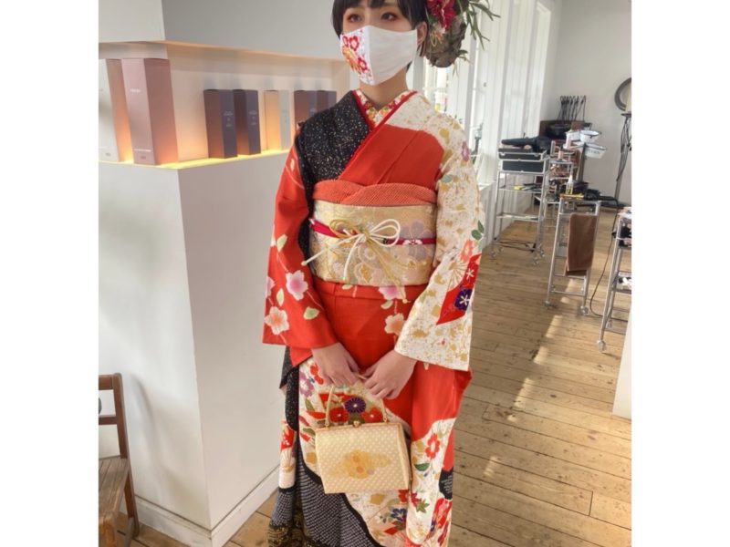 ママ振袖 ご成人おめでとうございます。 伊達えり、帯締めをかえて雰囲気のちがう着物に